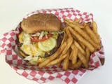 Indulge in our Chili Dogs featuring two quarter-pound all-beef hot dogs topped with homemade chili, melted cheese, fresh onions, and crinkle-cut pickles. Savor the juicy flavors in every bite. Order now for a satisfying meal experience!